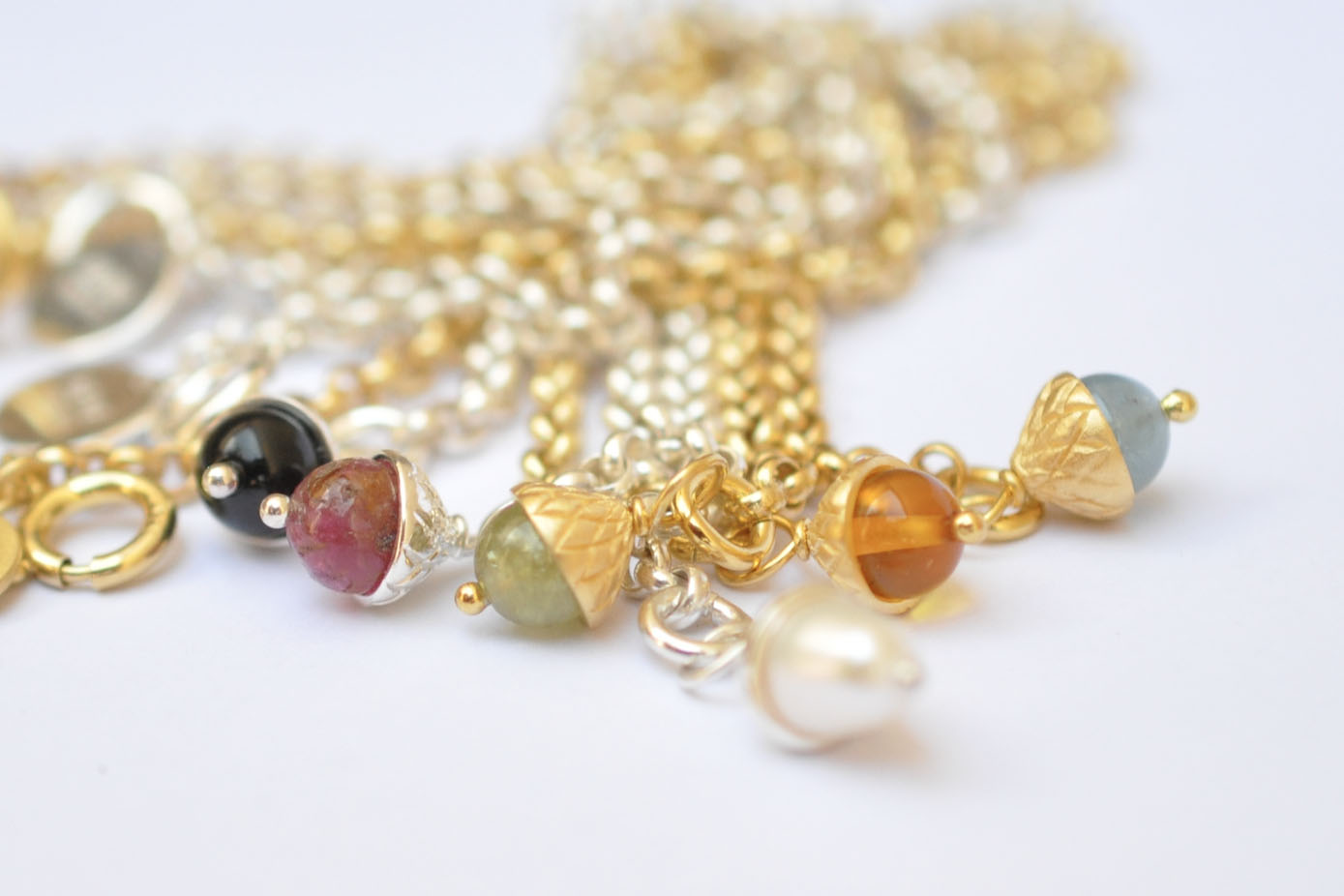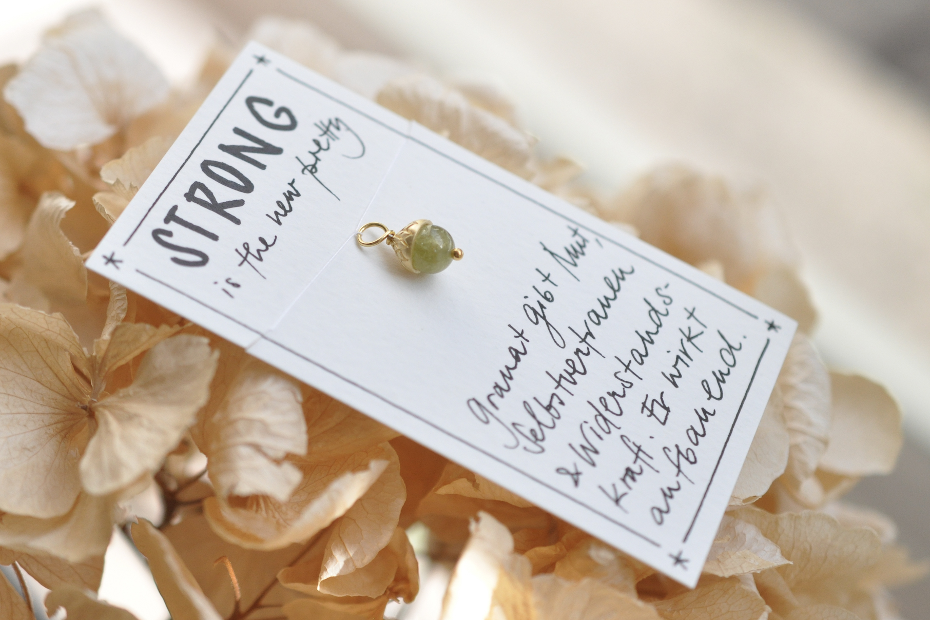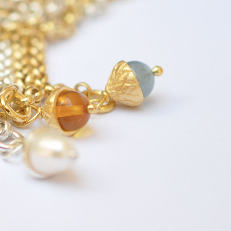 Basierend auf meinem Logo habe ich einen Entwurf gezeichnet und das Eibenbeeren-Käppchen in Indien für euch fair produzieren lassen. Manche nennen den Anhänger auch Eichel, manche Acorn – das nehmen wir gerne mit, ist doch die Eiche ein Symbol für Stärke, Standhaftigkeit und langes Leben.