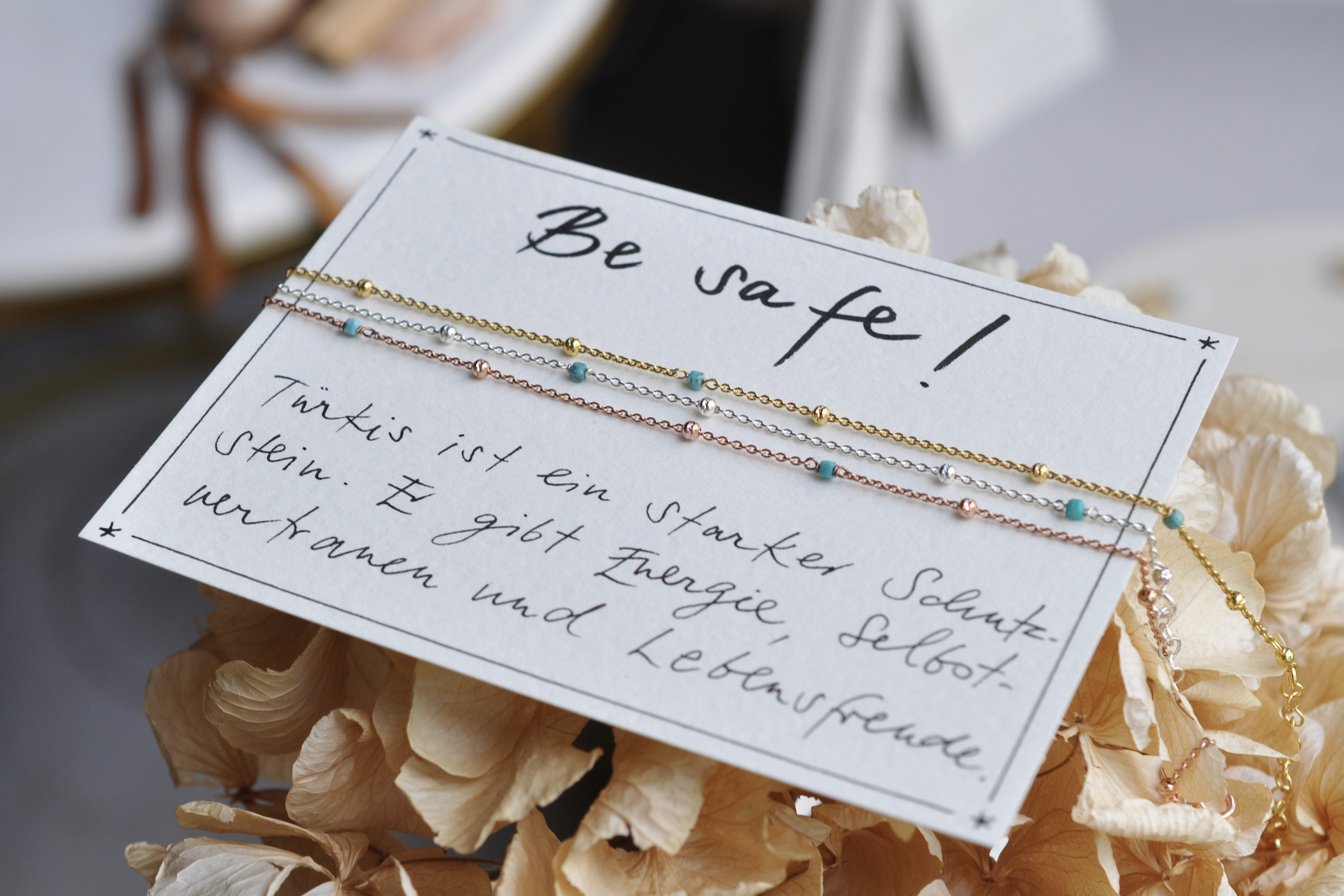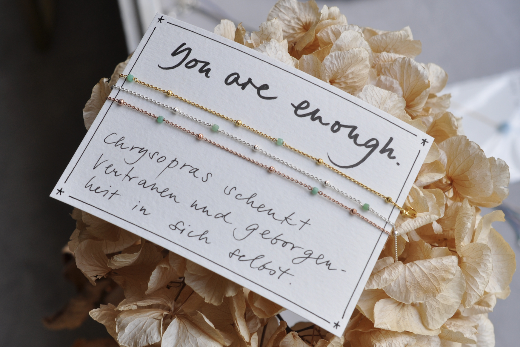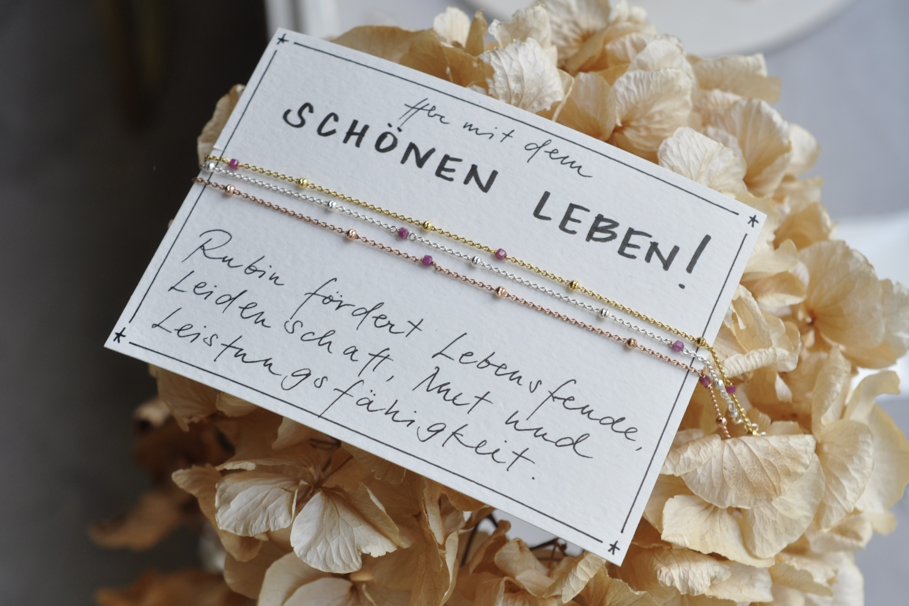 Verstellbare Fusskette in (vergoldetem) 925 Silber, handgeschriebene Karte. Kostenloser Versand.