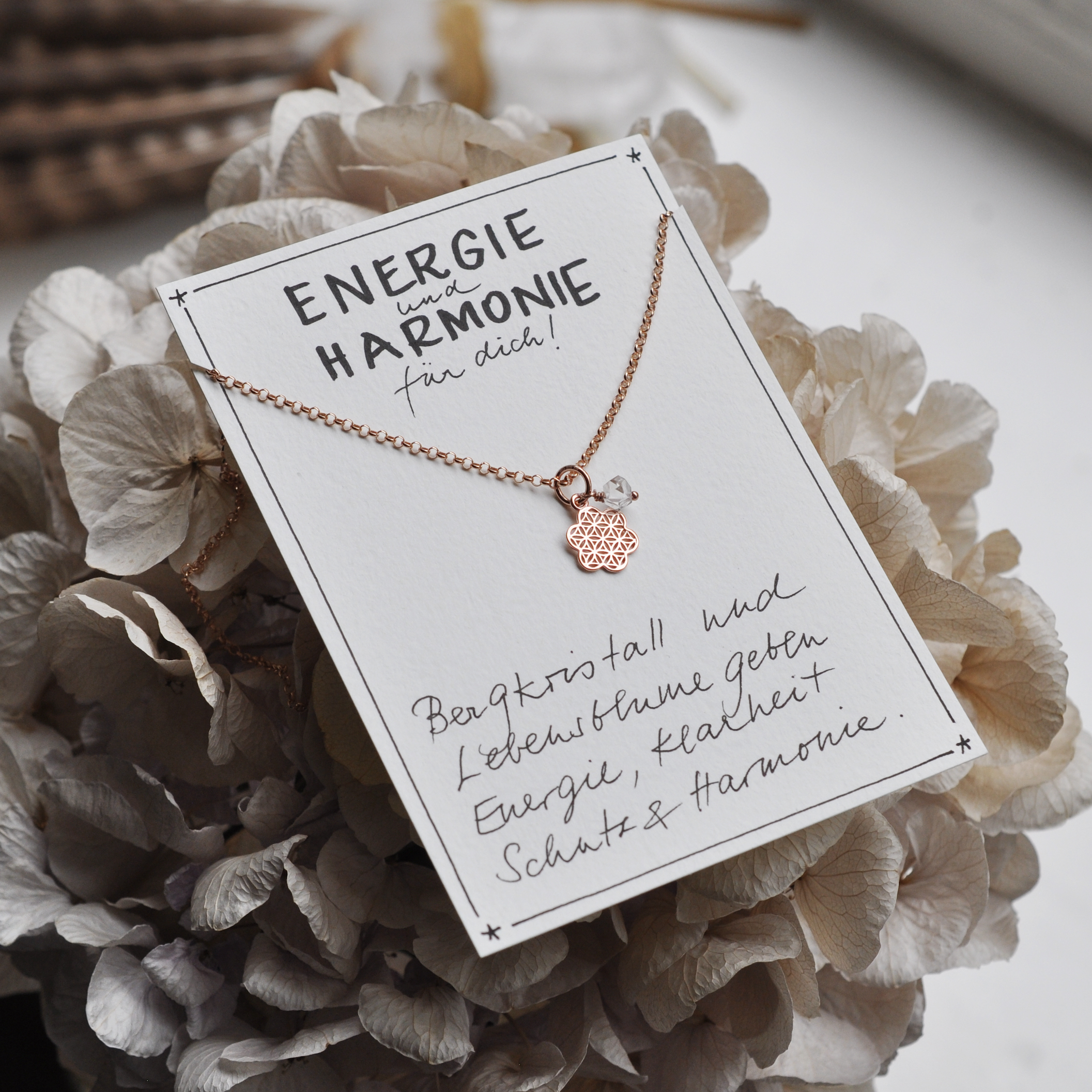 Ein kleiner natürlich gewachsener BergKRISTALL begleitet die Lebensblume.