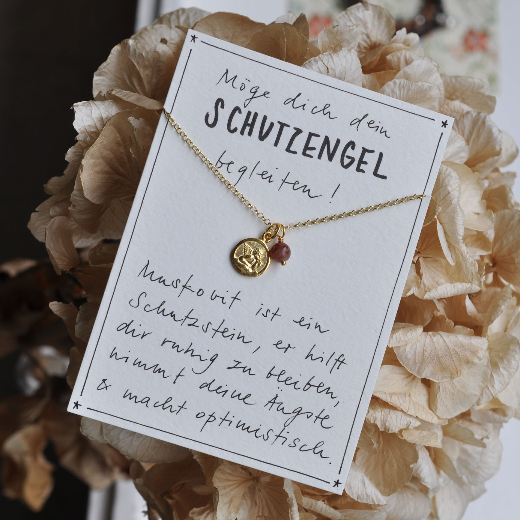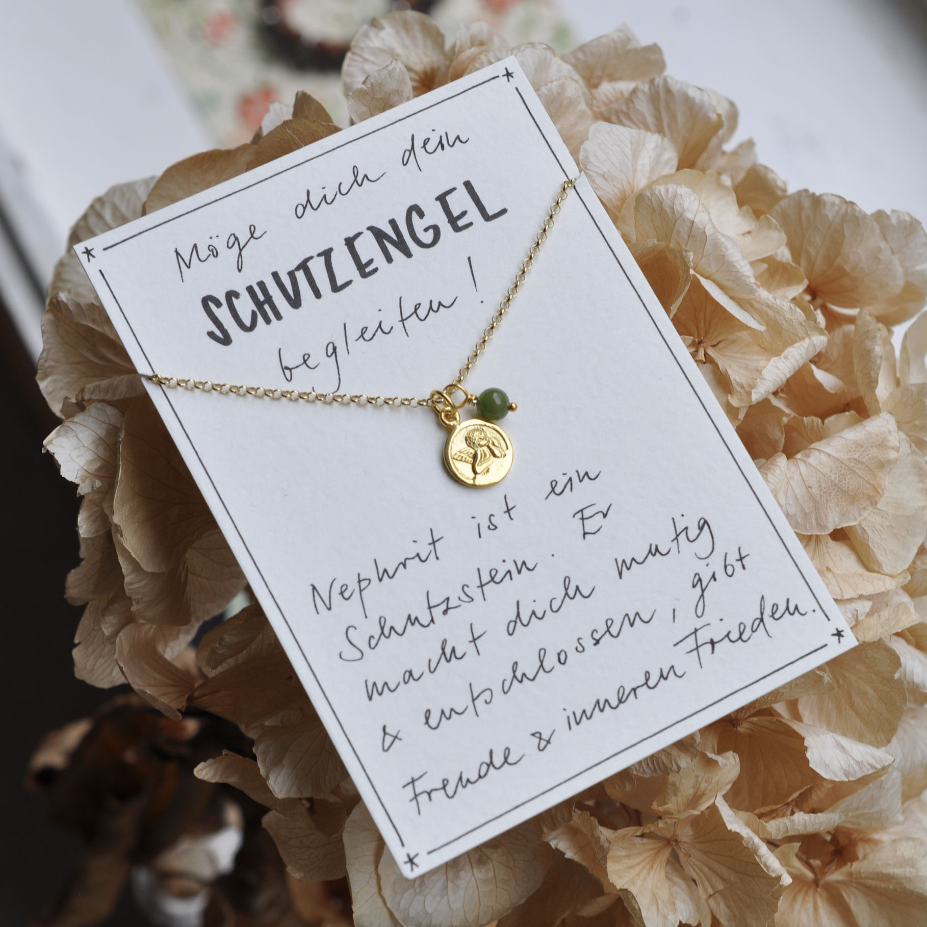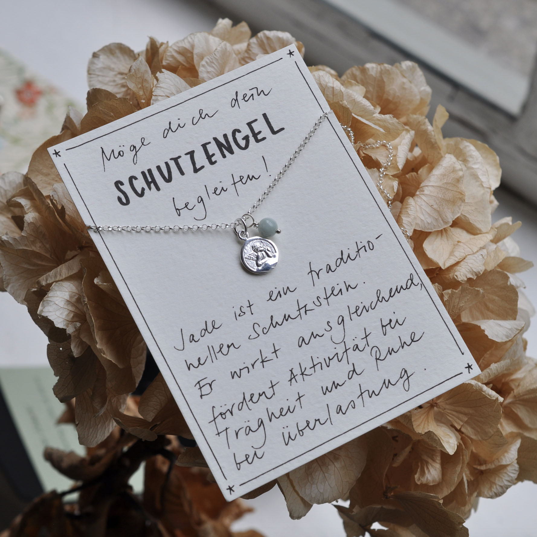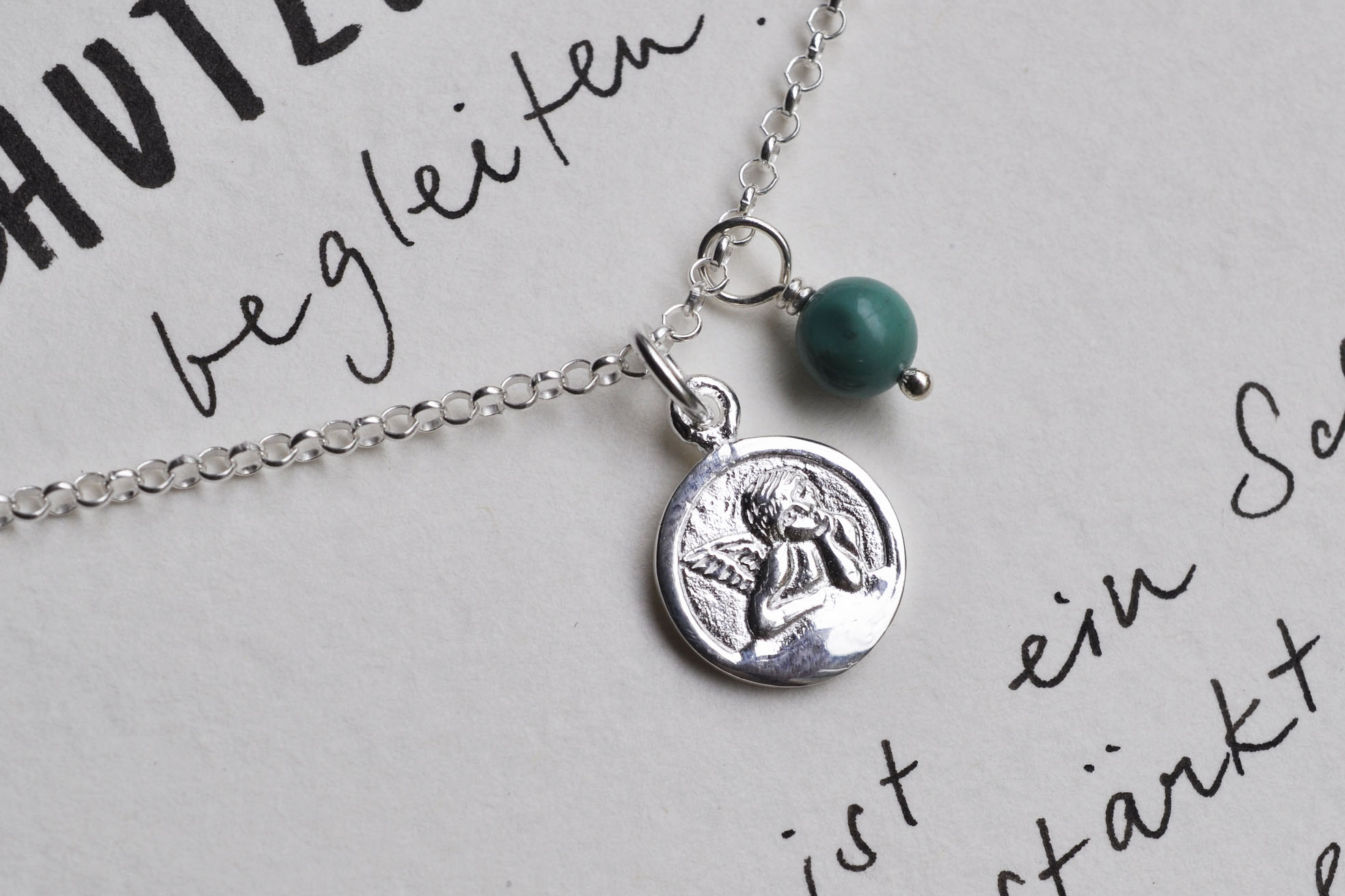 Ein klassisches Schutzengel-Amulett begleitet von einem Schutzstein.