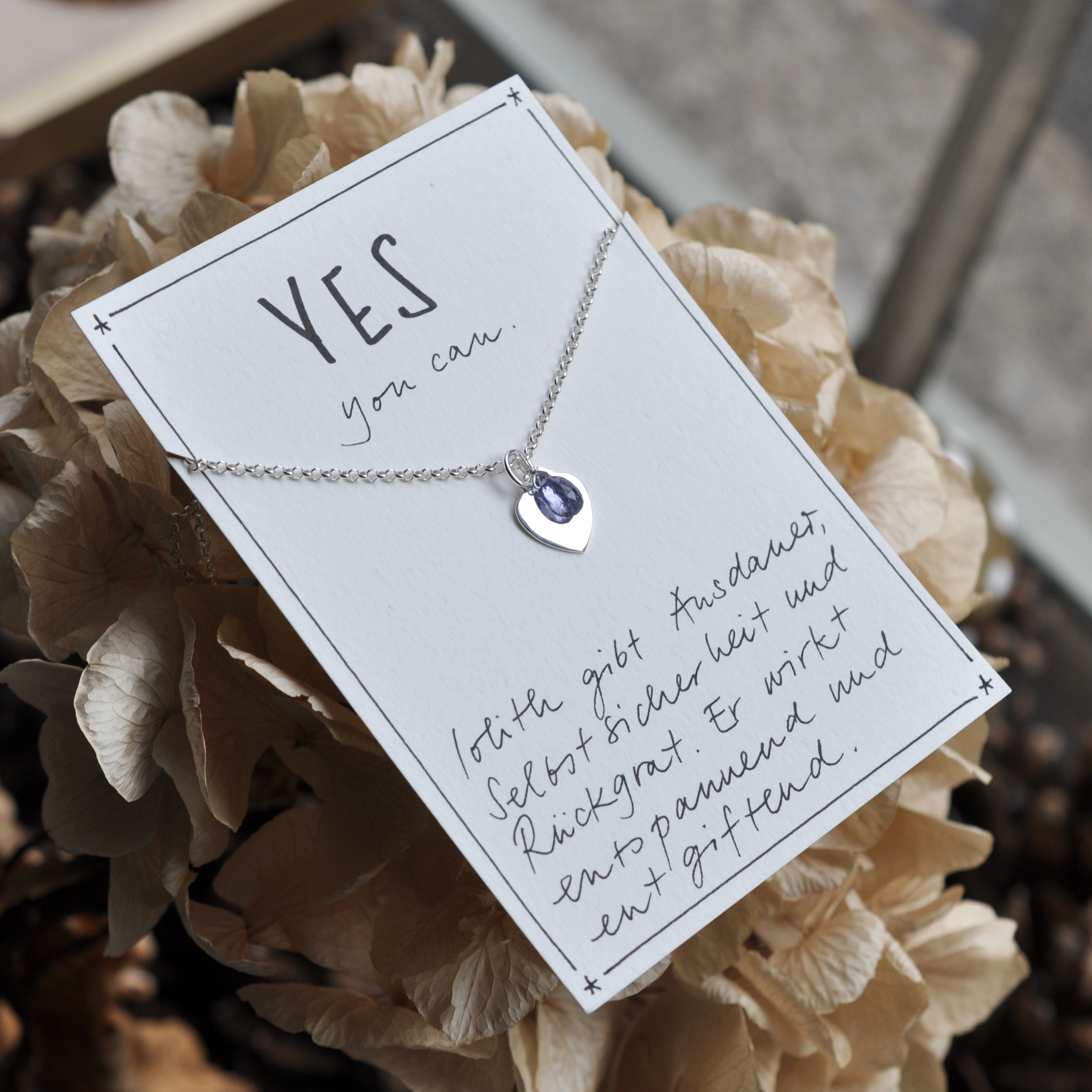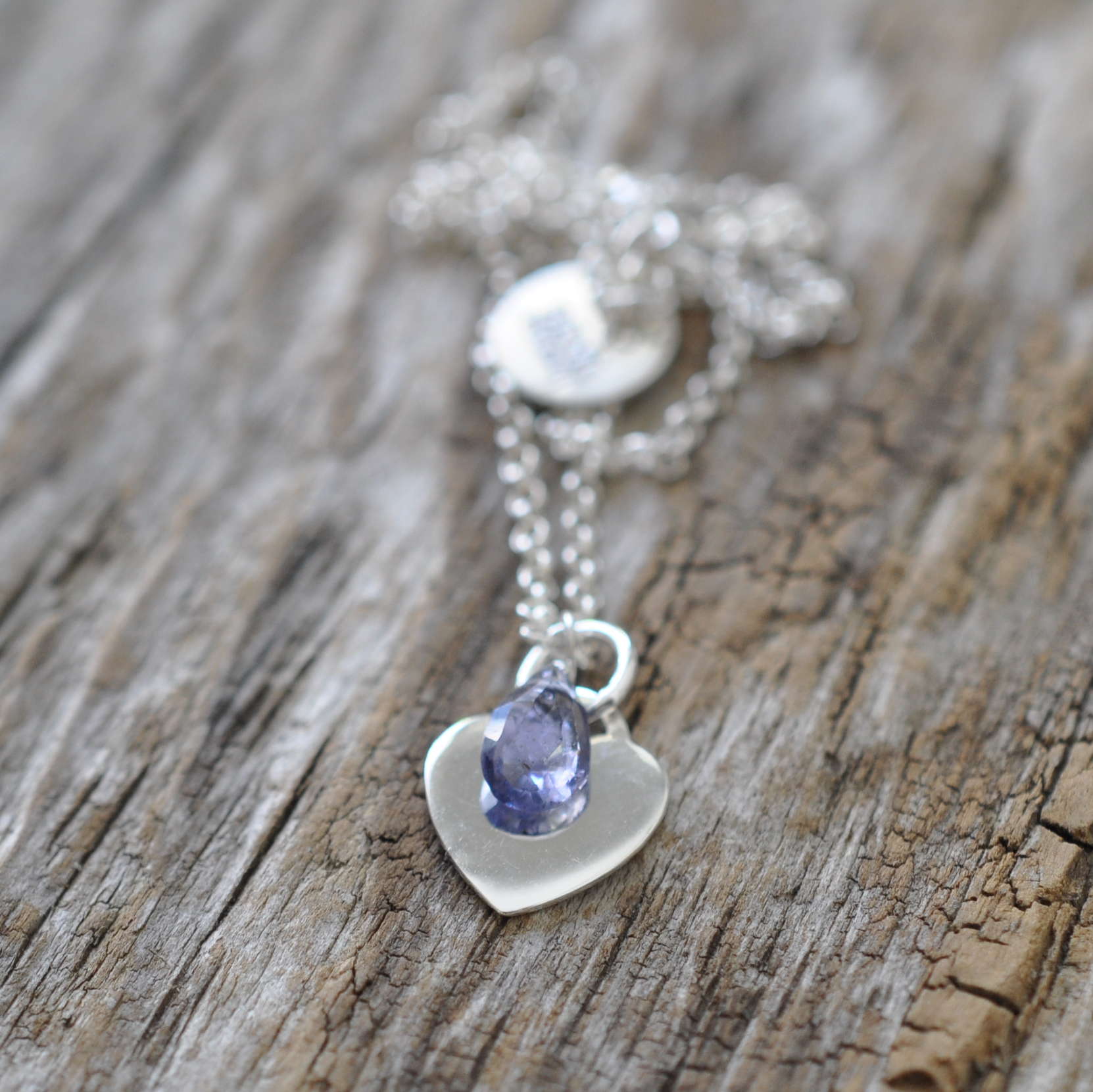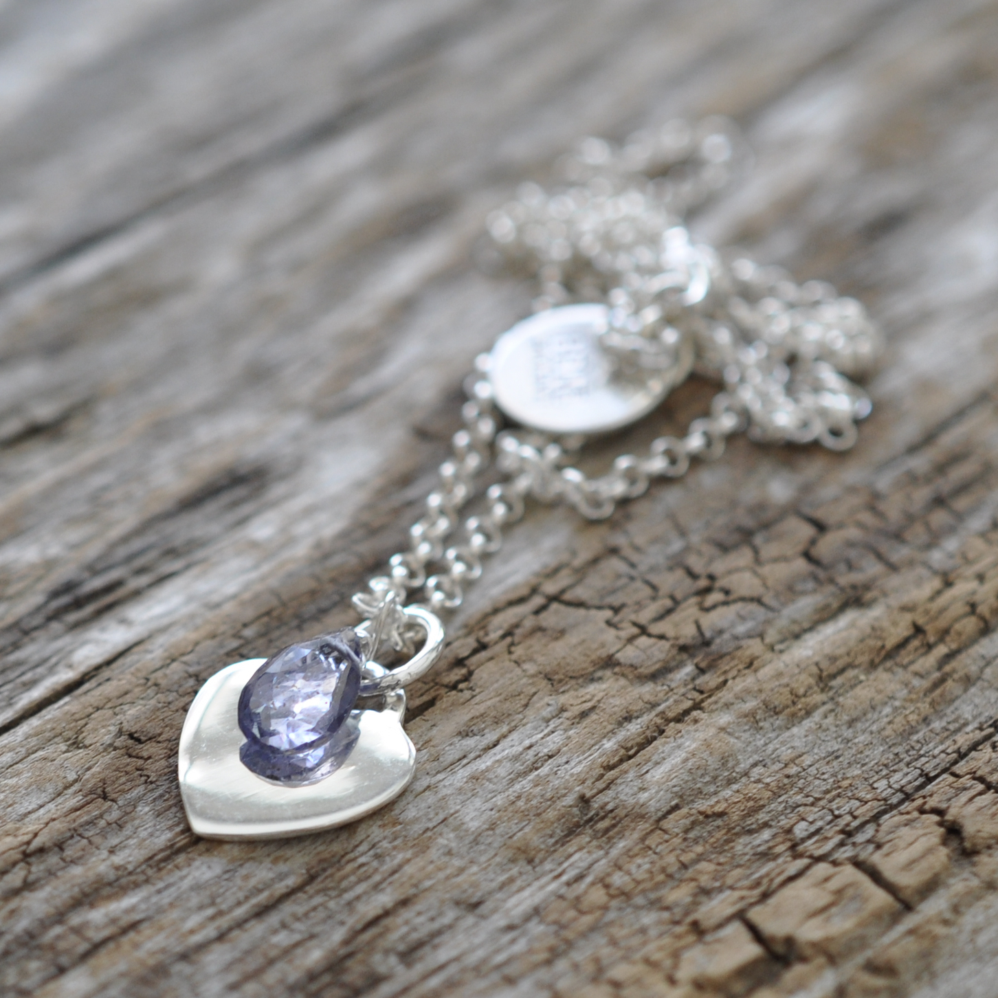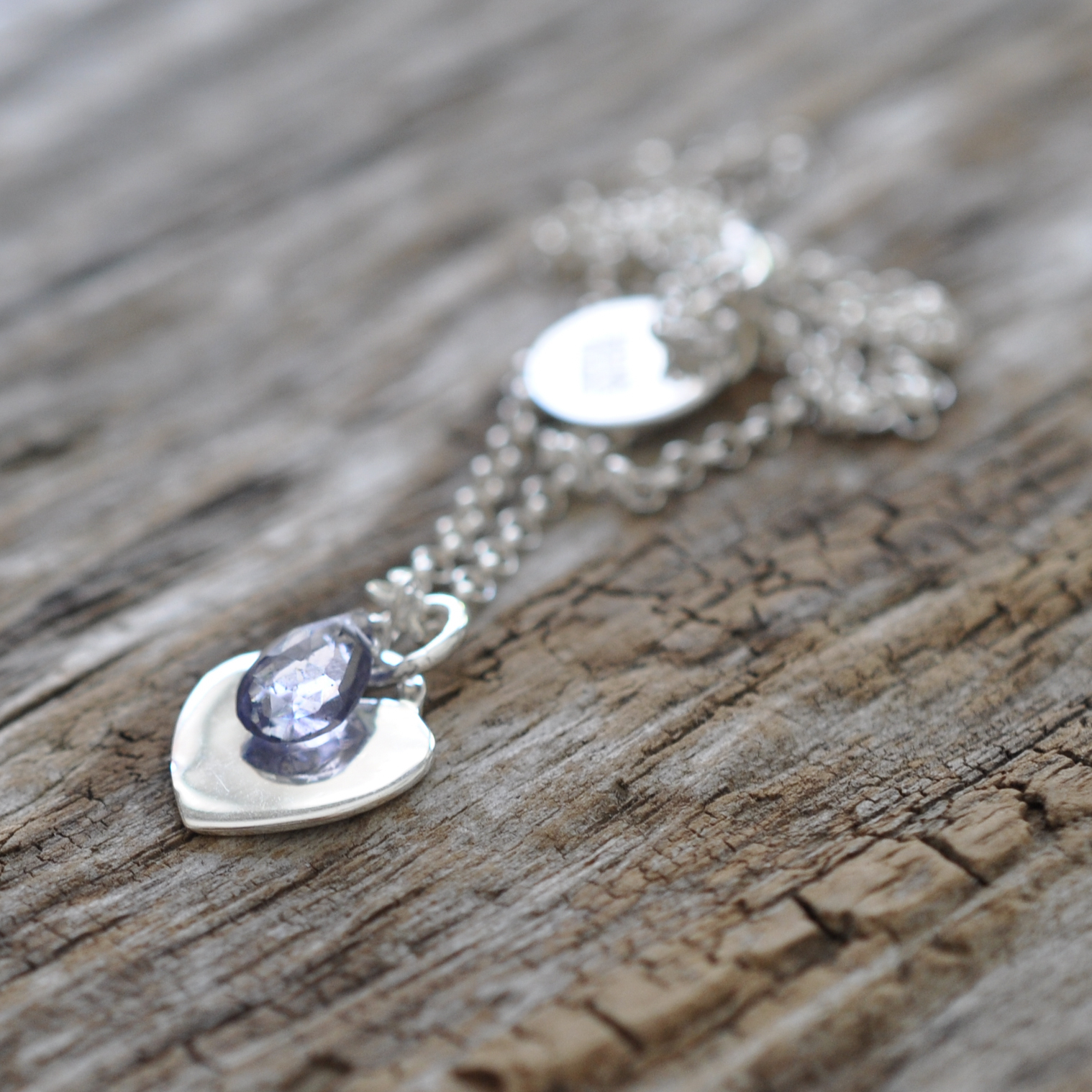 Dieser facettierte Iolith glänzt auf einem massiven Silberherz,
