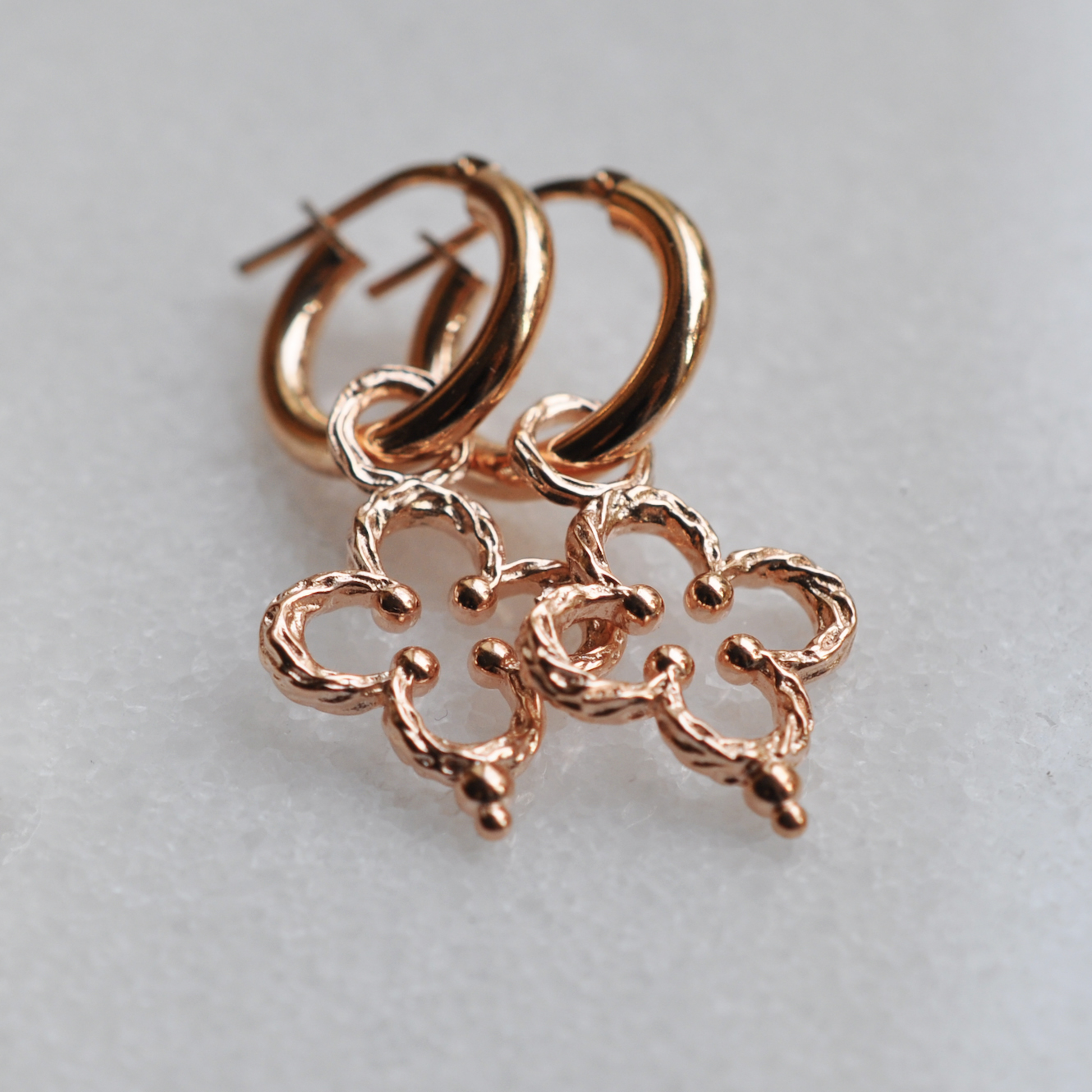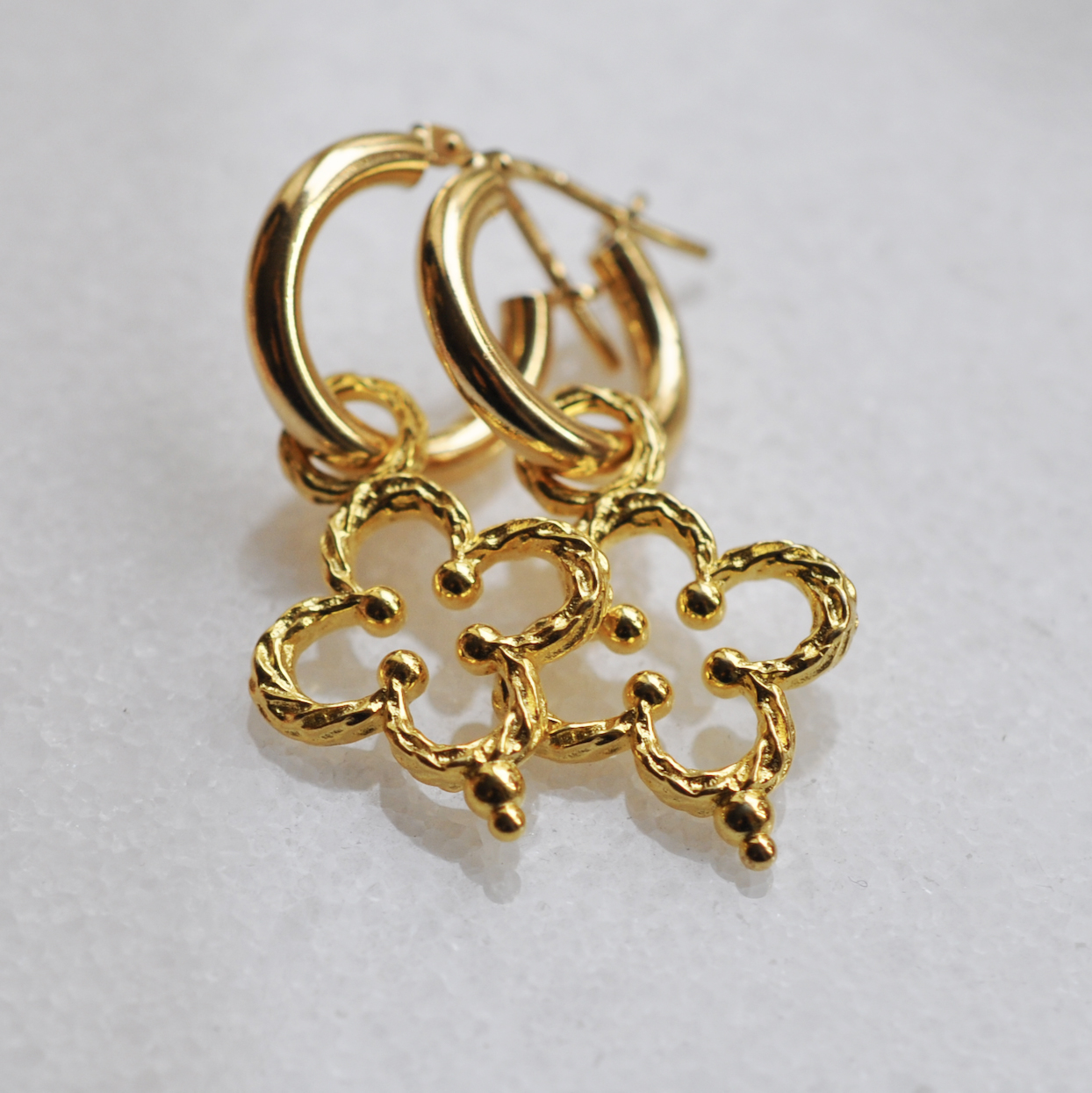 Klassische BENEVOLENTI Kreolen mit einem Glücksklee Anhänger aus (vergoldetem) Silber.
