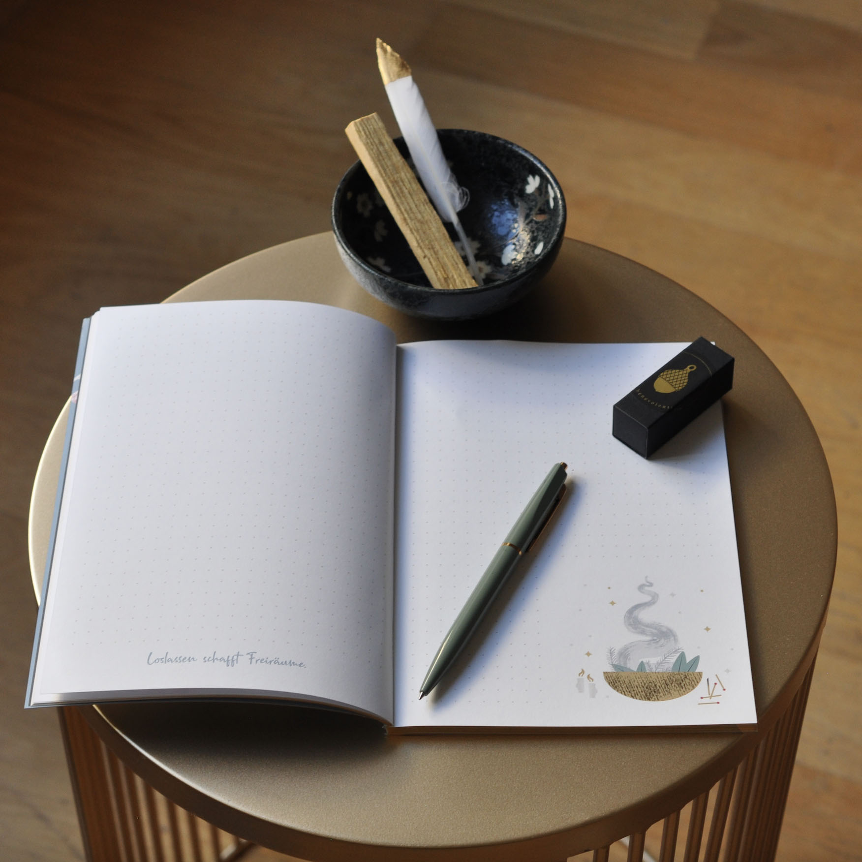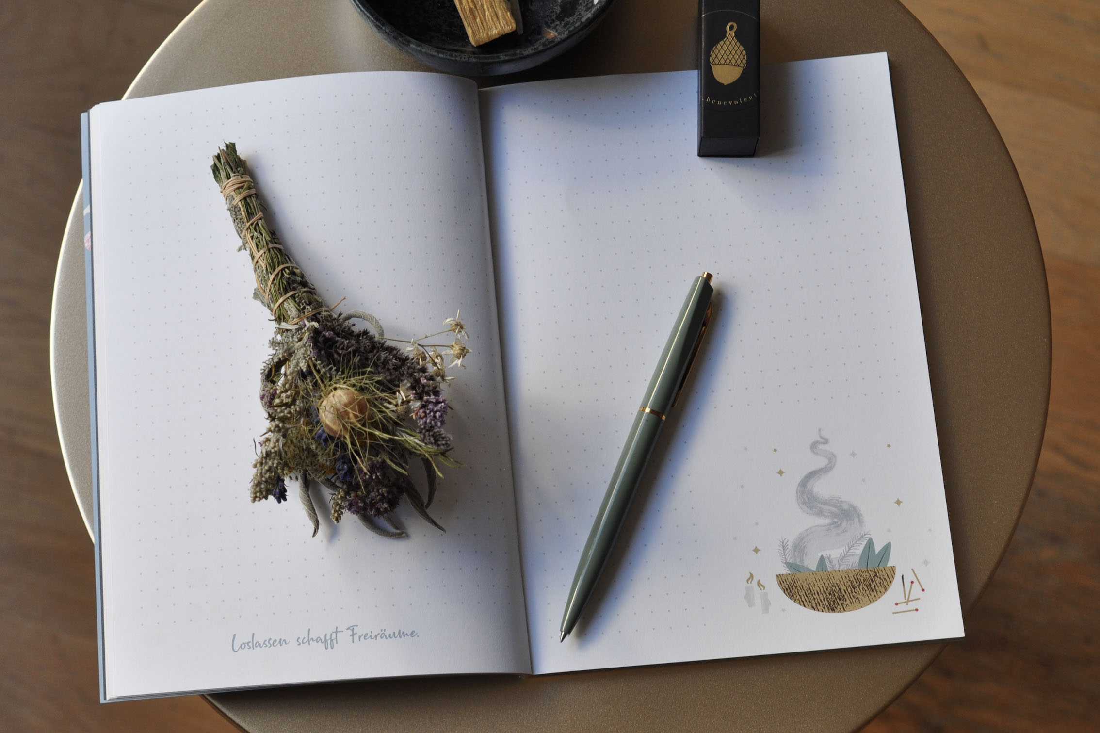 Die ideale Ergänzung zum Rauhnächte-Buch und zum Kartenset Rauhnächte – 12 Tage nur für dich, mit viel Raum, um die eigenen Gedanken und Erkenntnisse aufzuschreiben und mit Anleitungen, Leitfragen und Anregungen zur Selbstreflexion während der Rauhnächte.