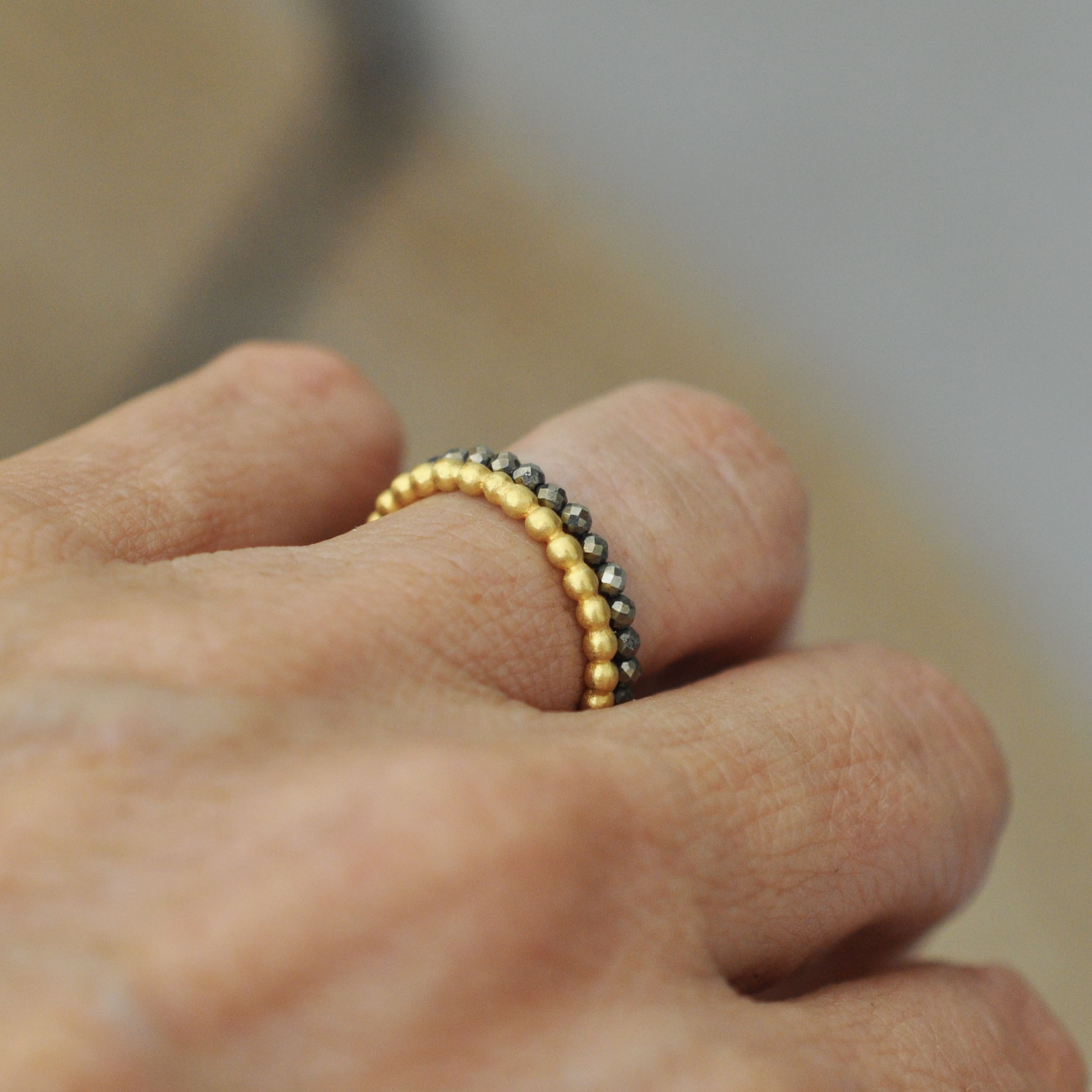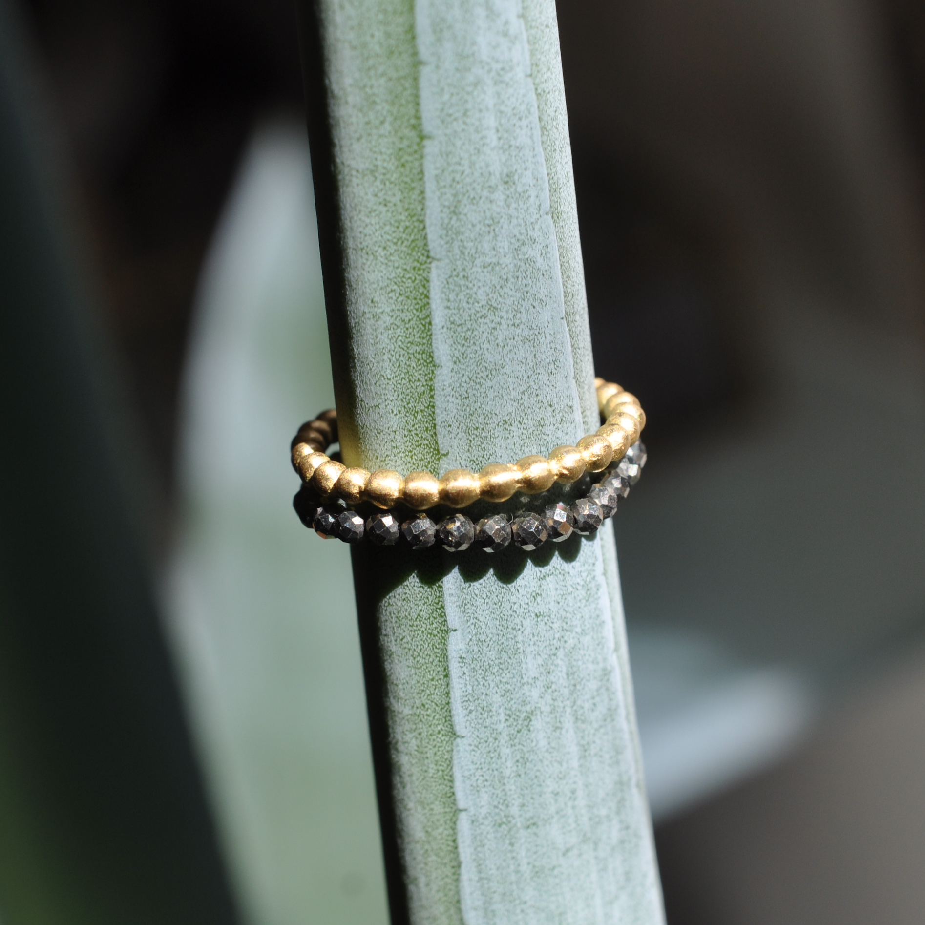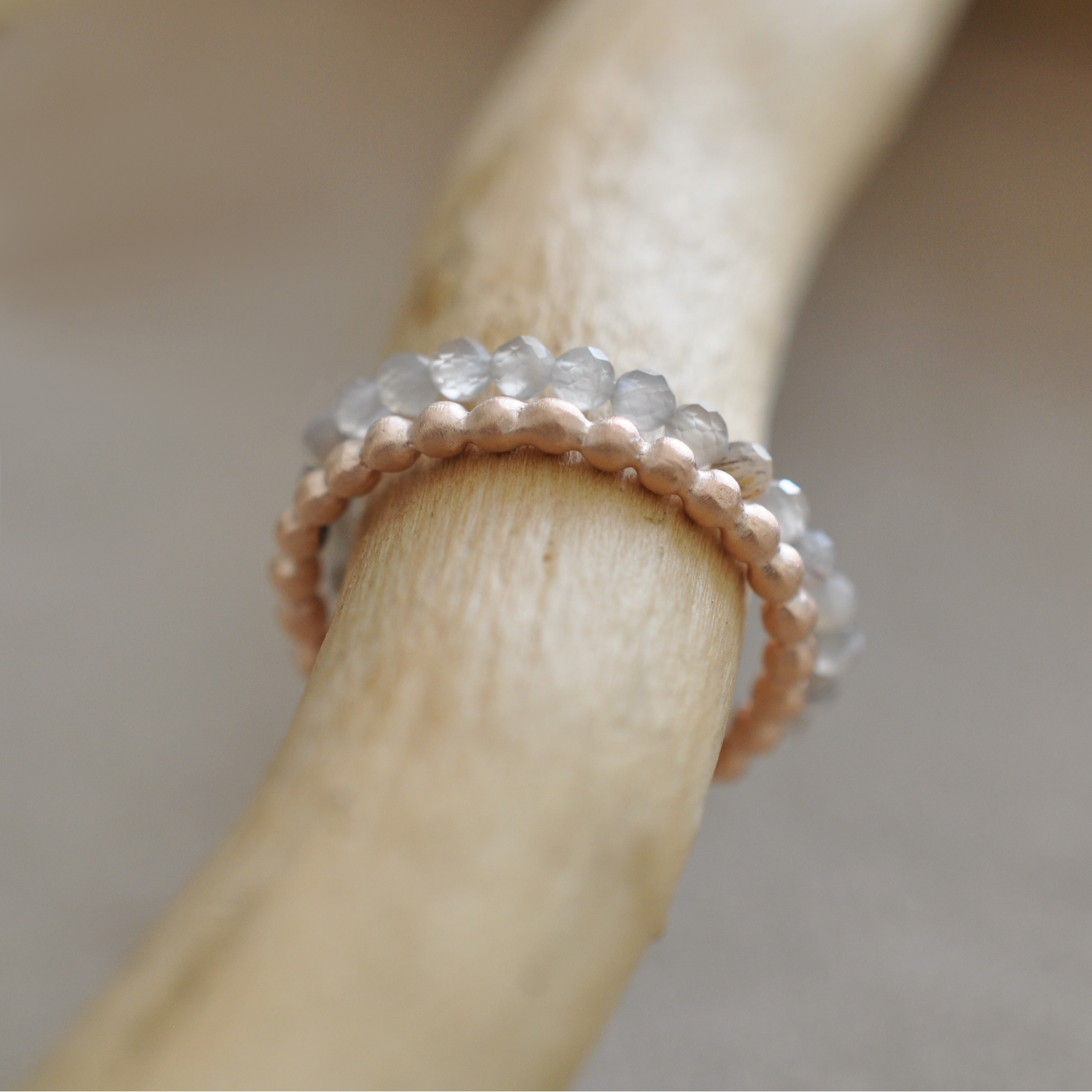 Pimp your Ehering mit diesen Fingerringen im mix’N’match Stil oder kombiniere diese feinen, sorgfältig von Hand aufgefädelten Edelstein-Ringe passend zum Outfit miteinander.