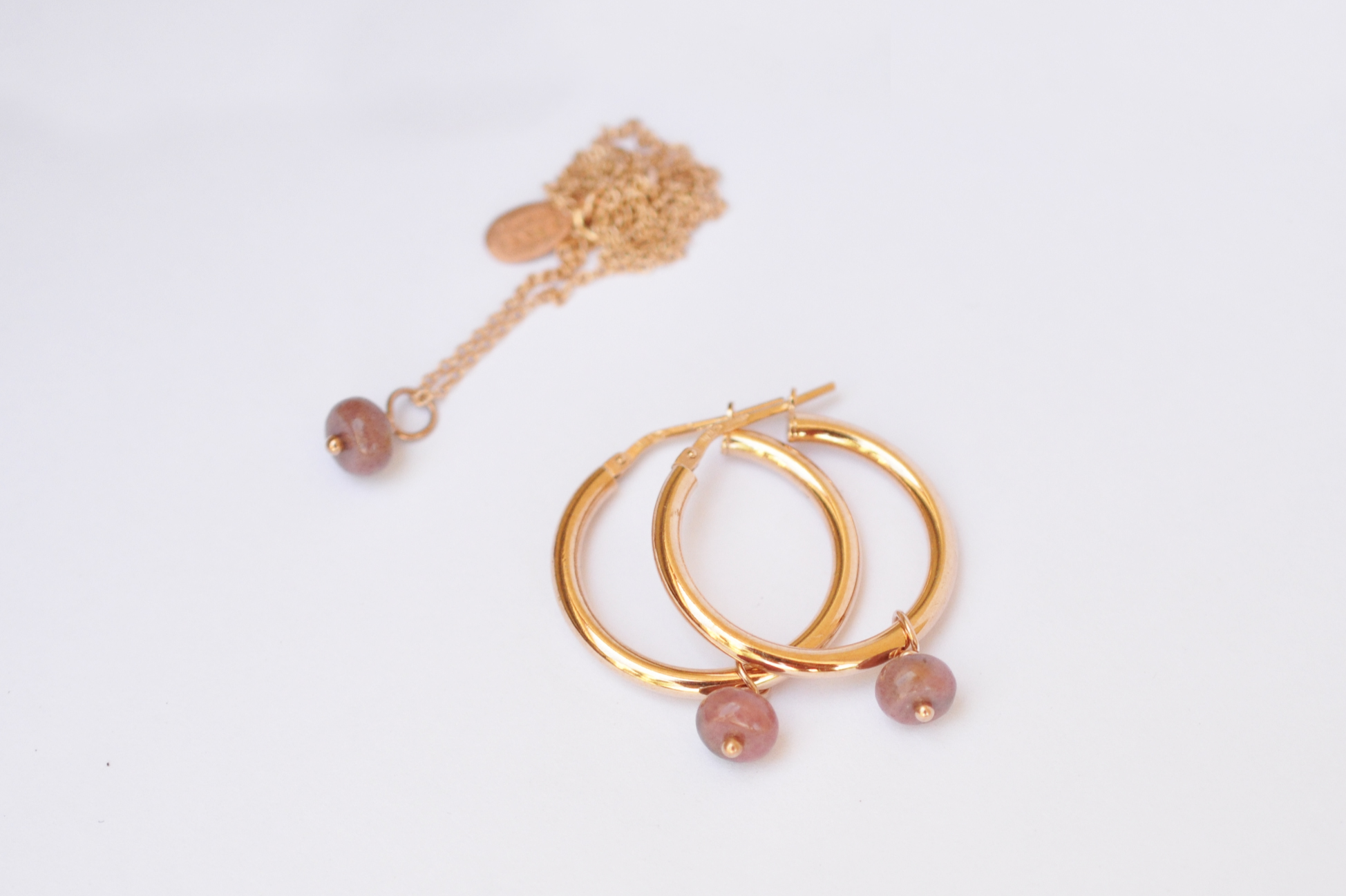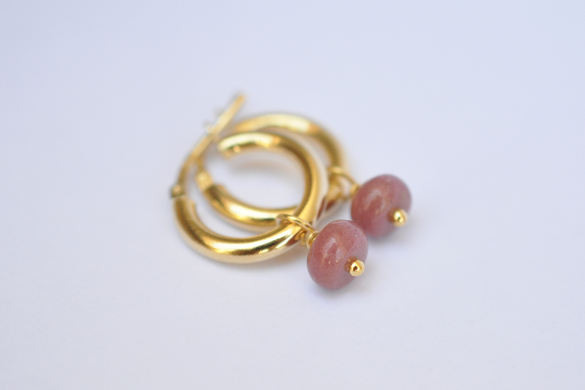 Kreolen in den Grössen 1.5cm im SET bzw. einzeln auch in 2.5cm. Rhodonit Buttons mit 6mm Durchmesser.