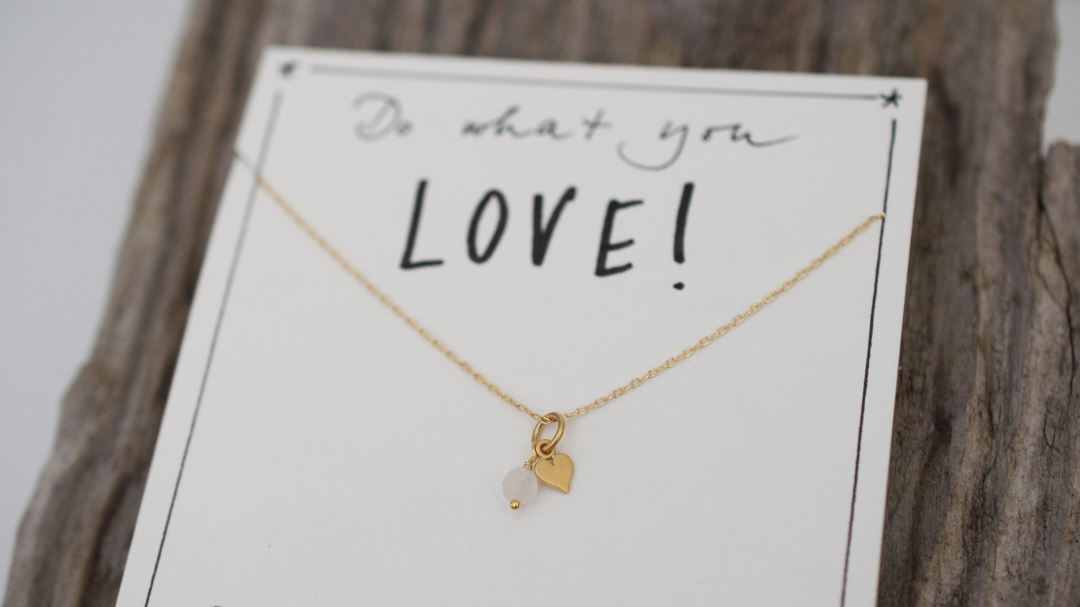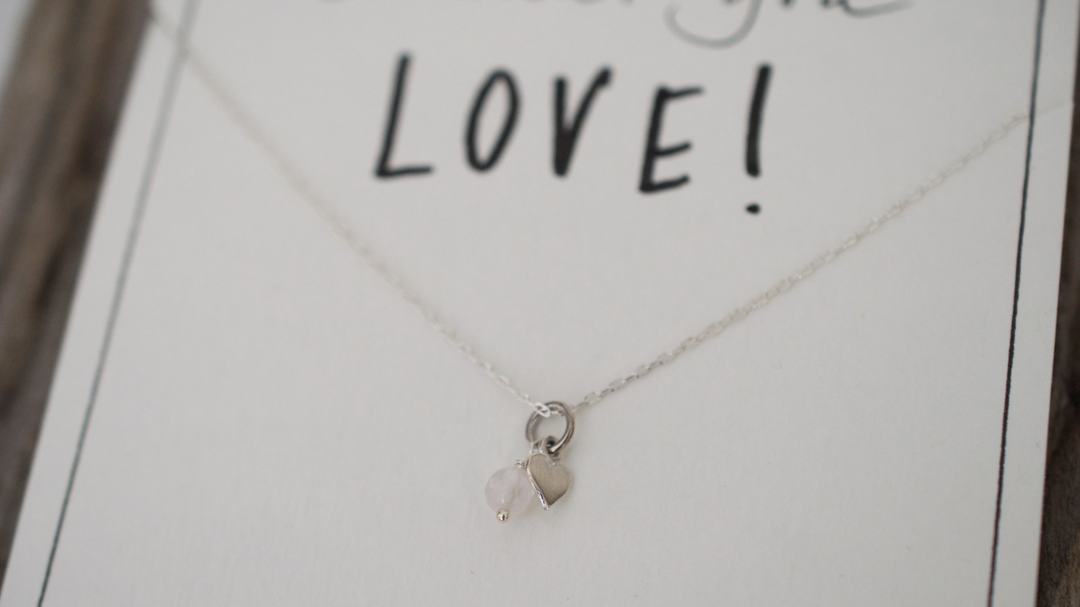 Ein kleines Herz begleitet von einem Rosenquarz.