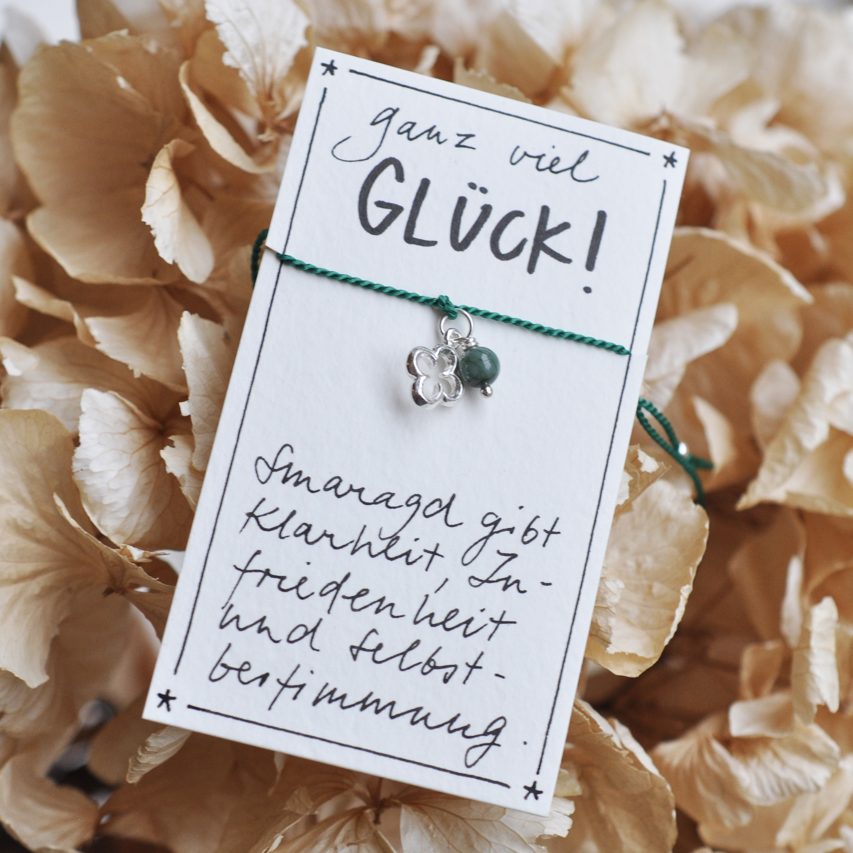 Ein Wunscharmband für die Prüfung oder jede andere Situation, wo Konzentration, Ruhe und Erfolg gebraucht wird. Oder einfach für das tägliche Quäntchen Glück.