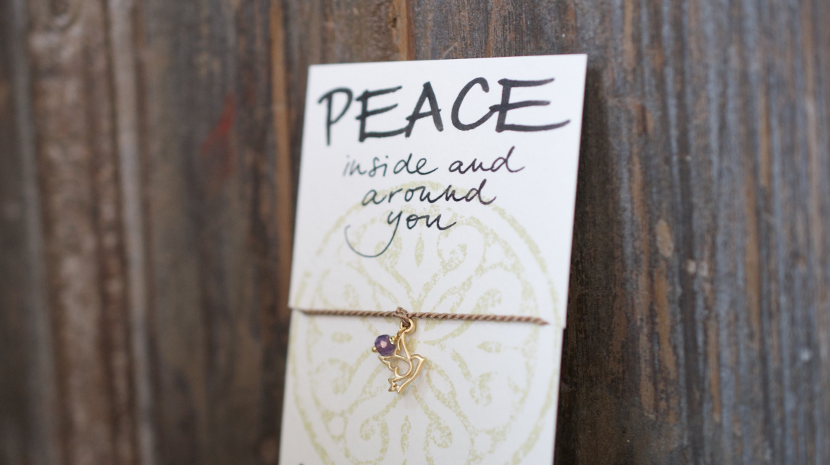 Dieses Wunscharmband erinnert uns immer wieder daran, Frieden zu stiften – in der Welt und in uns selber.