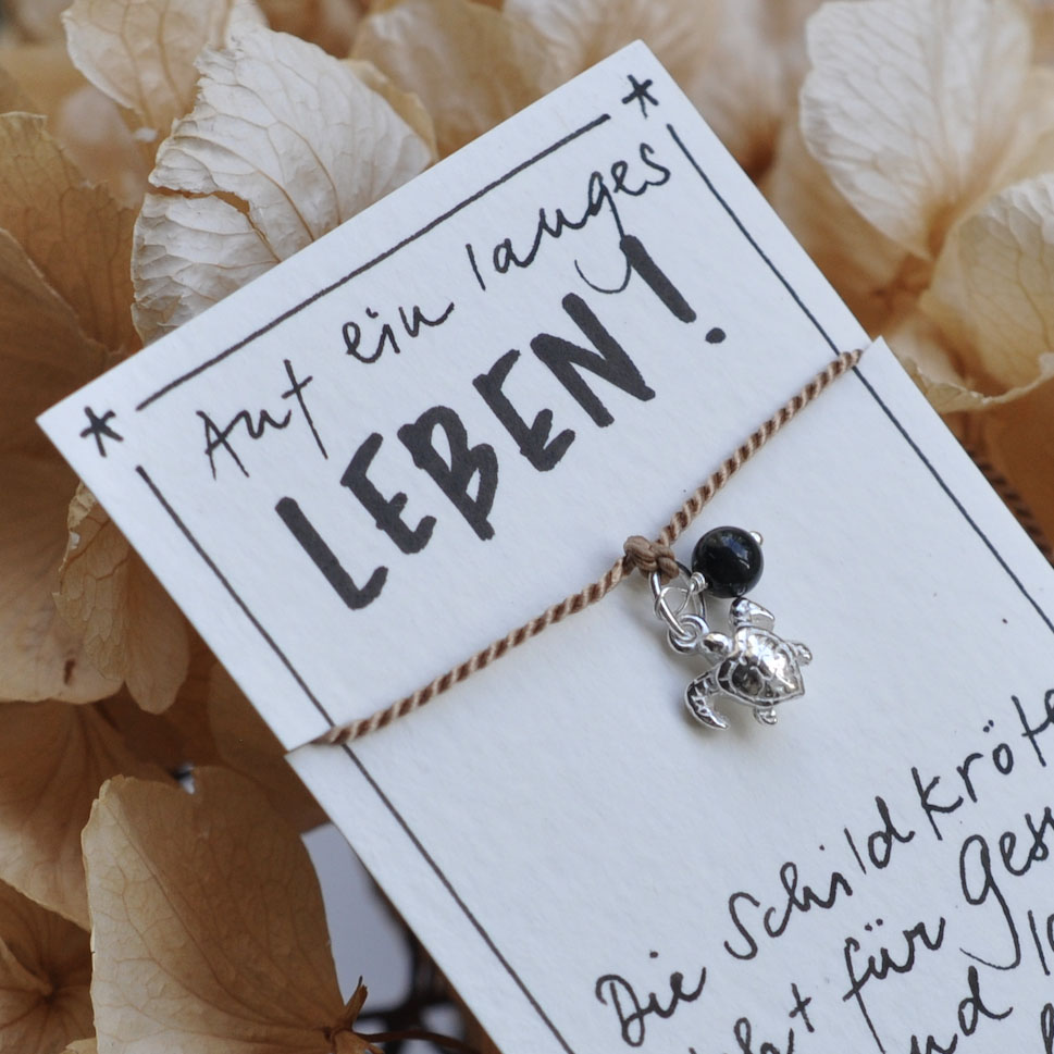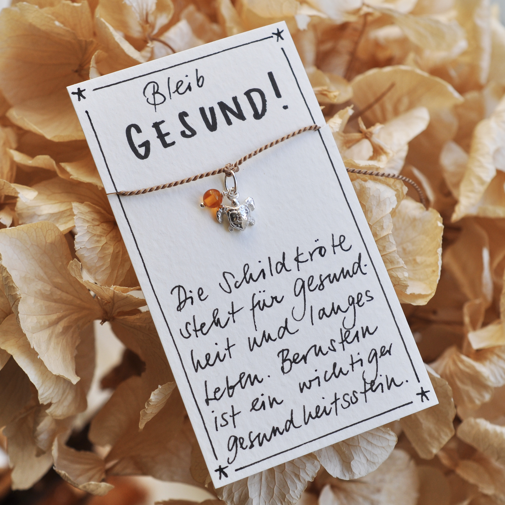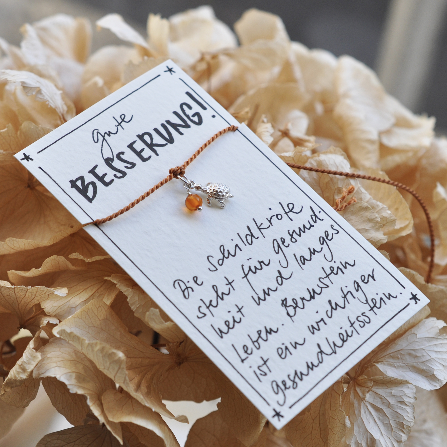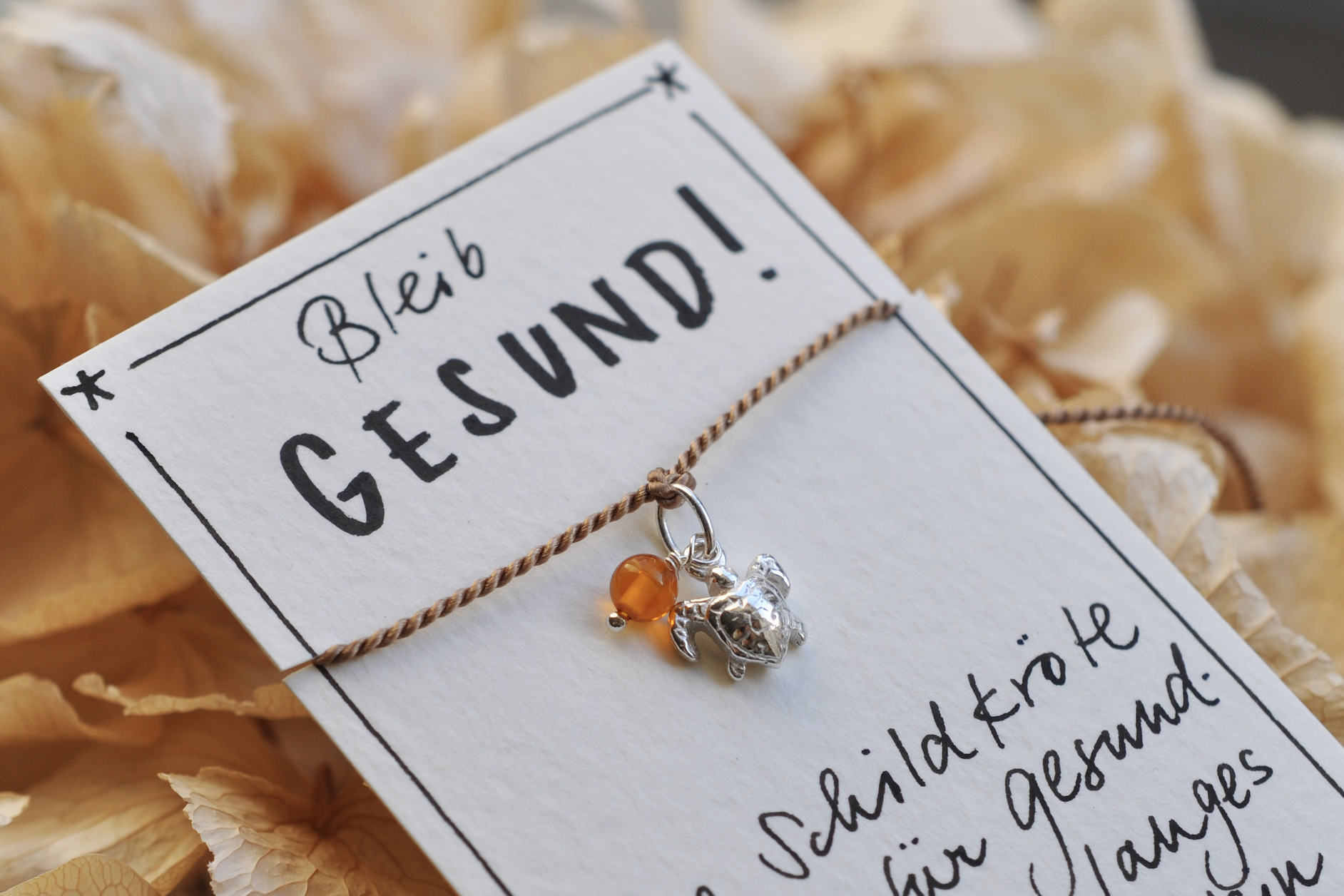 Wunscharmband Gesundheit: Heliotrop und Bernstein sind mit von den wichtigsten Gesundheitssteinen, die Schildkröte ist ein Symbol für Gesundheit und langes Leben.