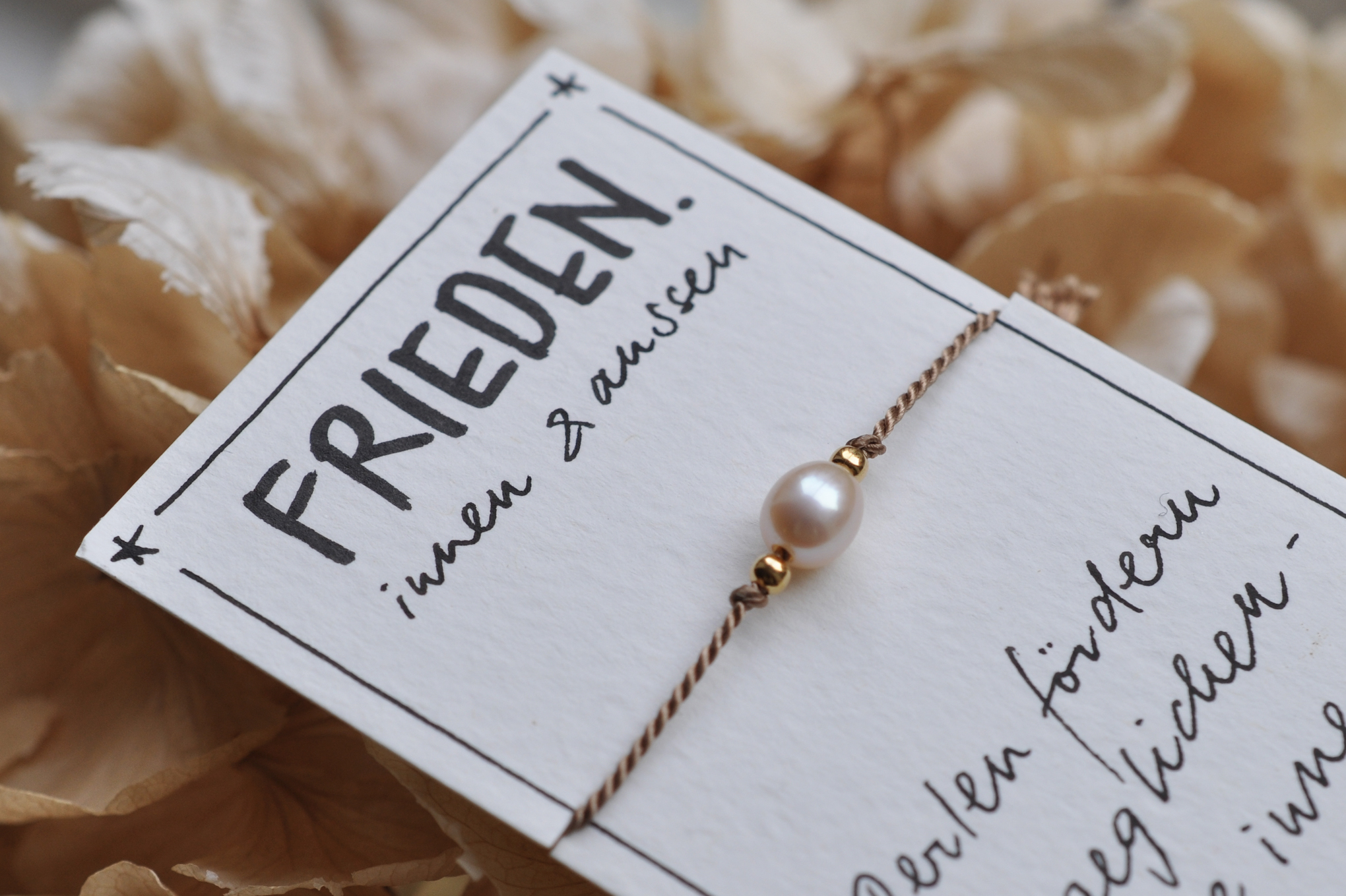 Eine natürliche Perle steht im Zentrum dieses Wunscharmbands. Flankiert von zwei (vergoldeten) Silberkugeln ist dieses Wunscharmband in der Länge frei verschiebbar und fügt sich so wunderbar zu deiner Lieblingsschmuck Sammlung.